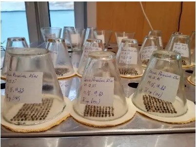 В настоящее время семена разложены на аппарат для проращивания семян, после проведения анализа чистоты и определения массы 1000 семян. А также на питательную среду в чашках Петри для определения степени зараженности патогенными грибами, результаты фитопатологического анализа будут определены через 7 дней, посевные качества семян через 15 дней и оформлены документы о качестве семян, где отражается вся информация и рекомендации по предпосевной обработке семян.